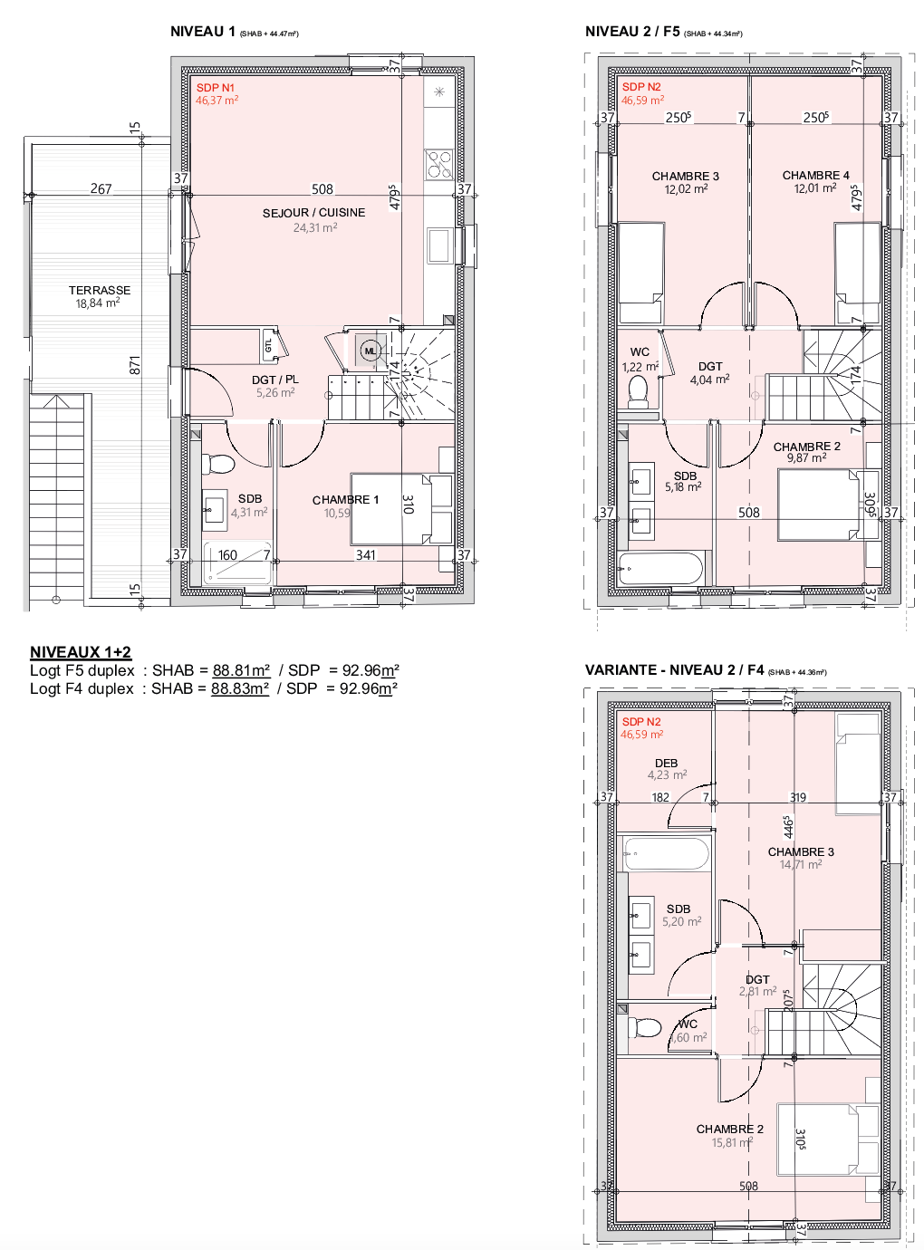 Surface Terrasse 9D,10D,11D : 18,75M2